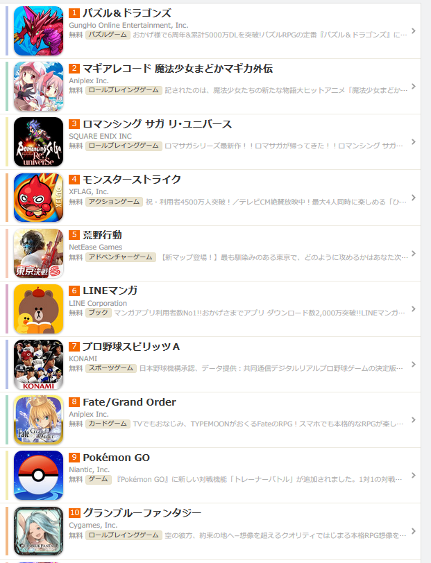 それよりまだパズドラが1位取れるのか